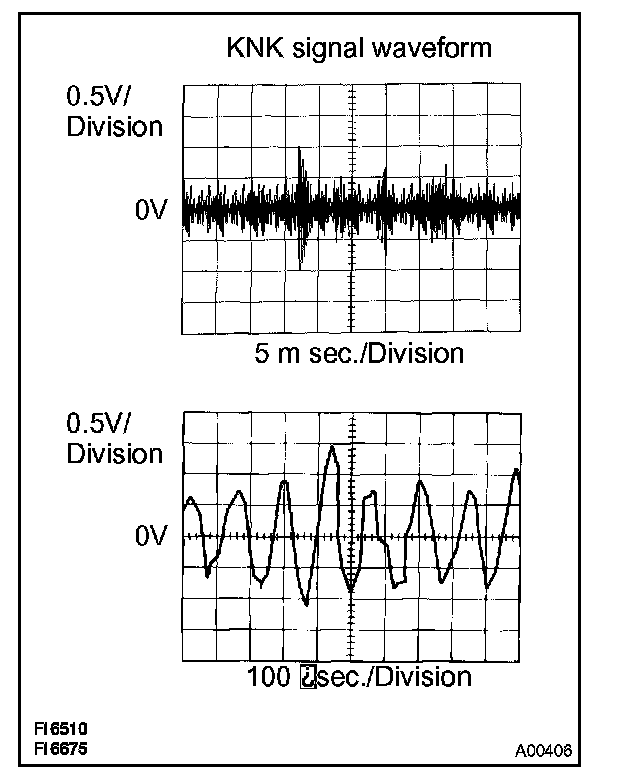 The ECM also senses background engine noise with the knock sensor and uses this noise to check for faults in the sensor. If the knock sensor signal level is too low for more than 10 sec., and if the knock sensor output voltage is out of normal range, the ECM interprets this as a fault in the knock sensor and sets a DTC.