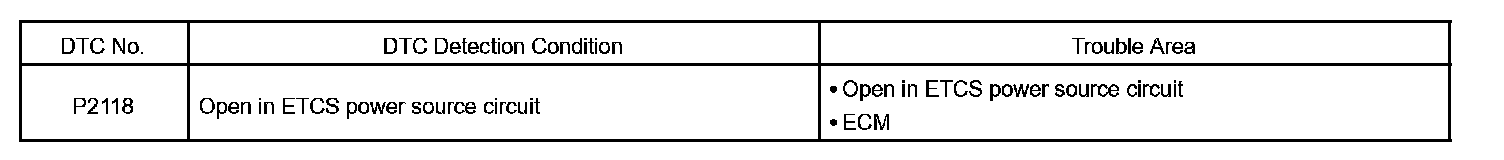 If this DTC is stored, the ECM shuts down the power for the ETCS motor and the magnetic clutch, and the ETCS valve is fully closed by the return spring.