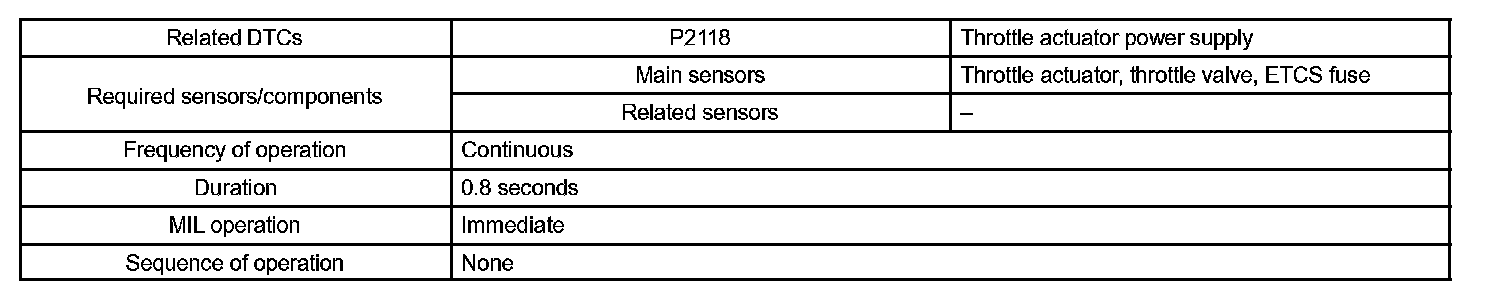 DTC P2118 THROTTLE ACTUATOR CONTROL MOTOR CURRENT RANGE/PERFORMANCE**: Only for sequential manual transmission vehicle.