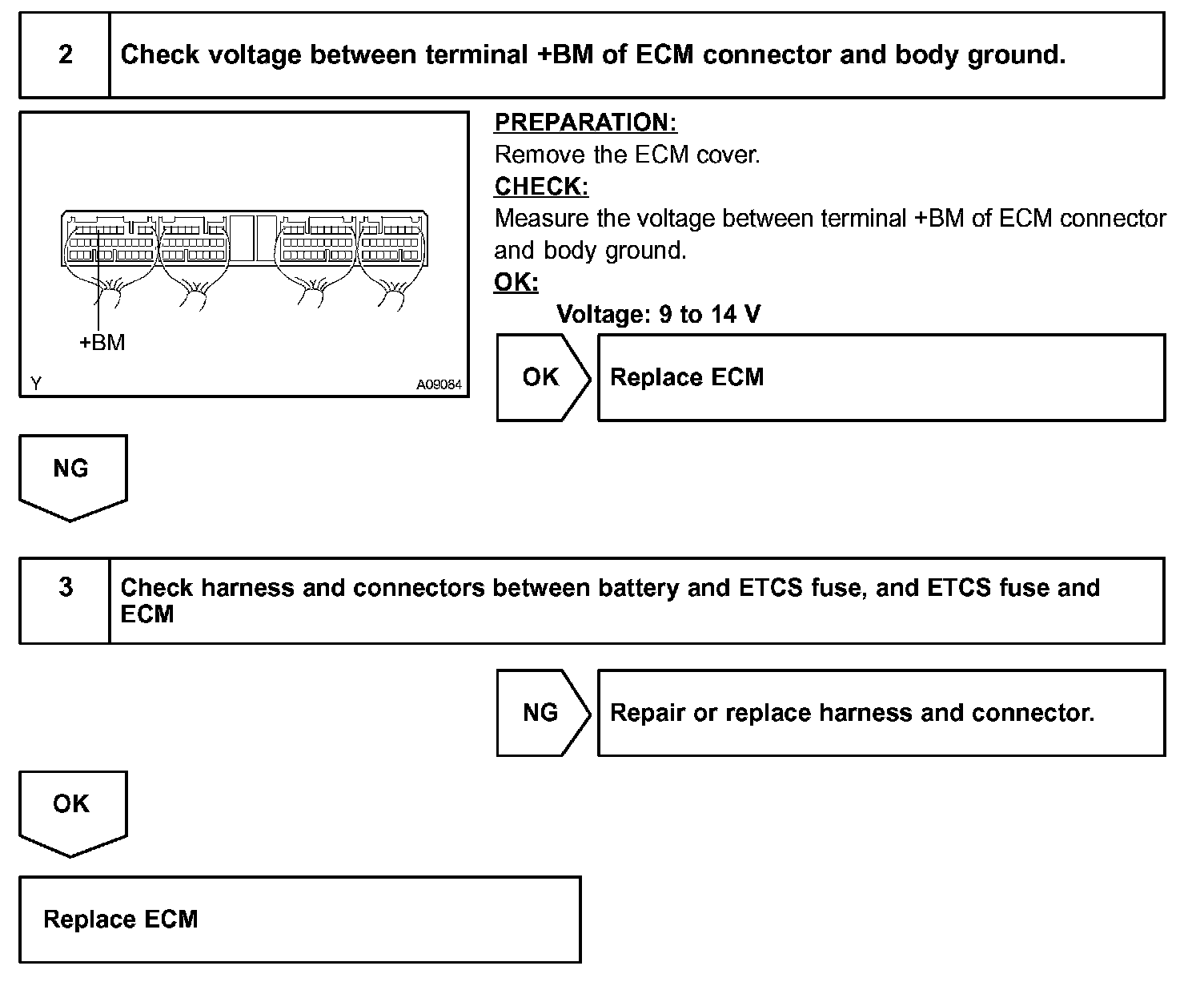 Positive battery voltage is supplied to terminal +BM of the ECM even if the ignition switch is turned to OFF for the Electronic Throttle Control System (ETCS) control system.
