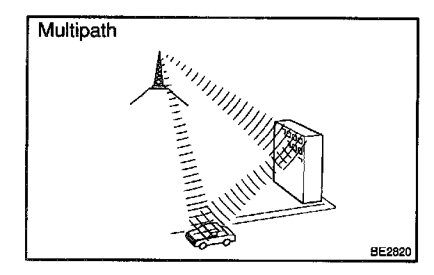 Interference caused by reflection of radio waves against obstructions is called "Multipath". Multipath occurs when radio signals emitted from the broadcast transmitter antenna are reflected against tall buildings or mountains and interferes with other signals which is to be received directly.
