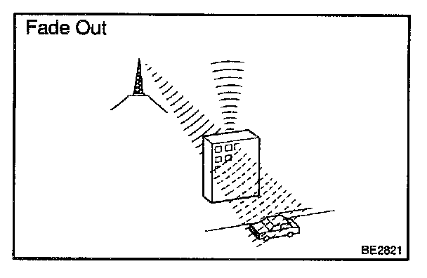 Because of the frequency higher than that of AM, FM radio wave tends to be reflected against obstructions such as tall buildings or mountains. For this reason, FM signals often seems to gradually disappear or fade away as the vehicle goes behind those obstructions. This phenomenon is called "fade out".