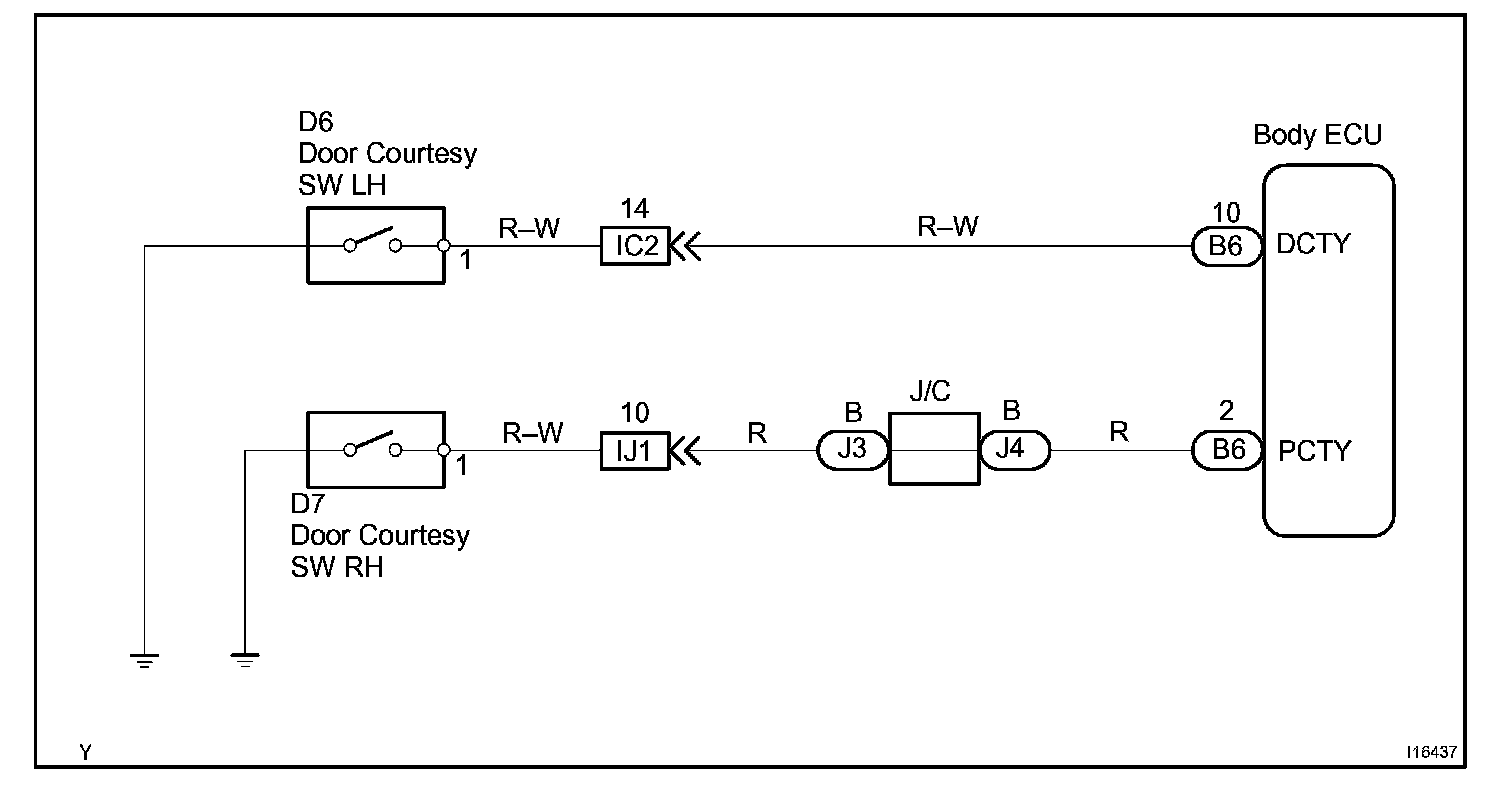 The door courtesy switch goes on when the door is opened and goes off when door is closed.
