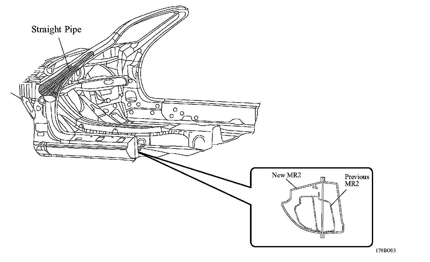 ^ A straight pipe is provided inside the front pillar to ensure the pillar rigidity that is equal to the closed body construction used in conventional sedans.