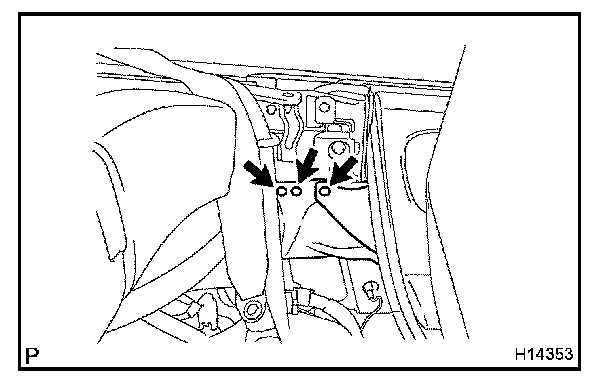Remove the shoulder anchor mounting bolt and disconnect the front seat outer belt.