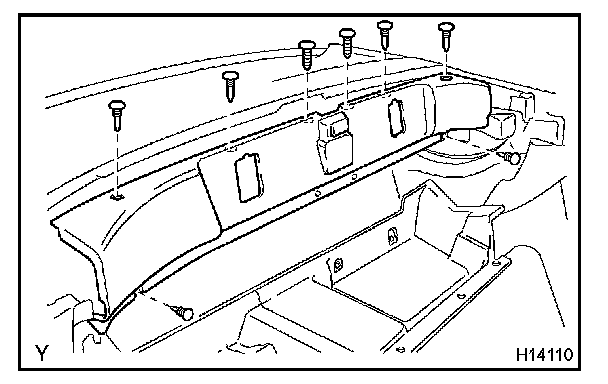 Remove the 8 clips and upper luggage compartment garnish.
