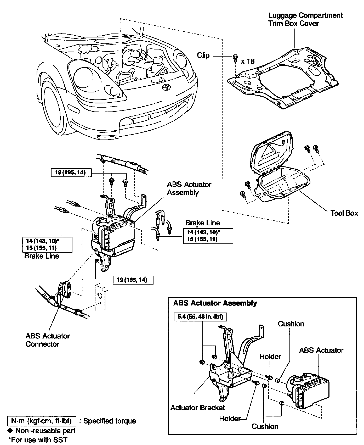 c. Install the ABS actuator assembly with the 2 bolts and nut.