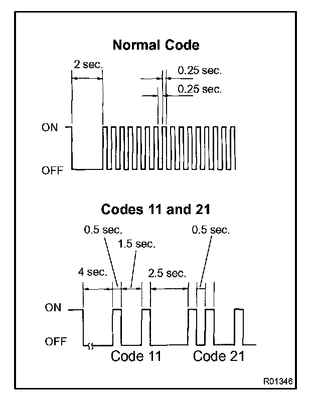 - As an example, the blinking patterns for normal code and codes 11 and 21 are shown.