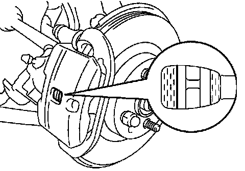 Check the pad thickness through the caliper inspection hole and replace the pads if they are not within the specification.