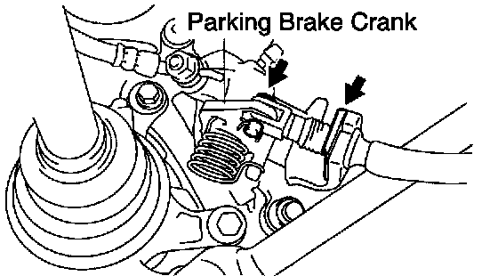 b. Pull out the pin while pushing the parking brake crank.