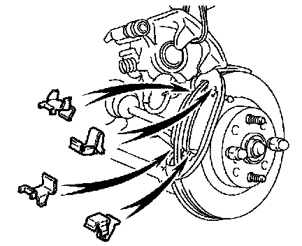NOTICE: When replacing worn pads, the anti-squeal shims must be replaced together with the pads.