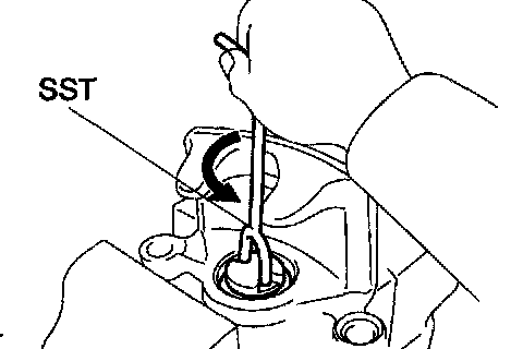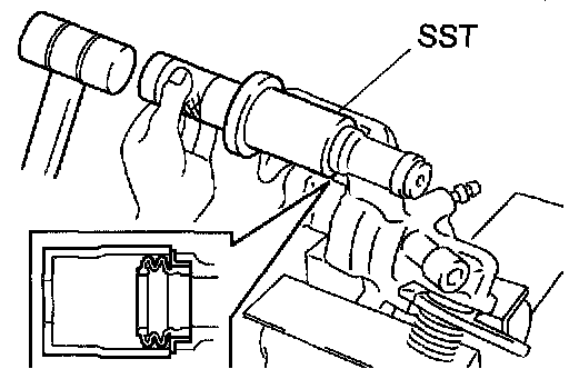 ^ To insure safety, always use SST as there is a possibility of the spring flying out, causing injury or damaging to the interior surface of the cylinder.