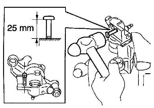 Tap in the pin to the brake cylinder until the stopper pin extends 25 mm (0.98 inch).
