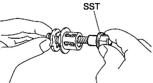 a. Set SST onto the adjusting bolt, and lightly tighten it with a 14 mm deep socket.