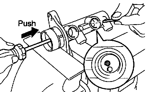 b. Push in the piston with a screwdriver, and remove the straight pins by turning over the cylinder body.