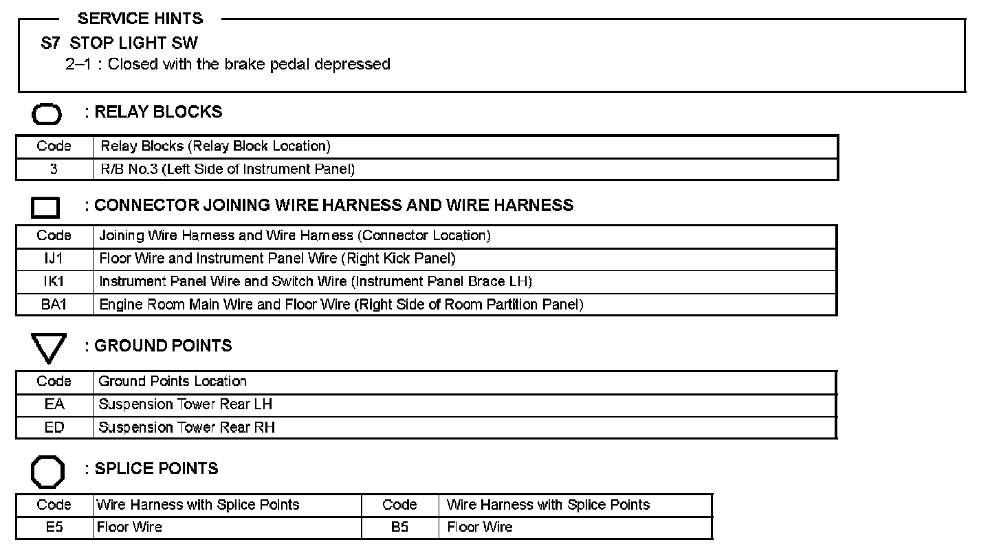 Locations: The locations of components, connectors, ground points, and splices referred to within these diagrams can be found at Vehicle Locations. Locations