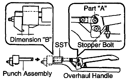 a. Install the punch assembly to the overhaul handle, inserting it in the hole in part "A" as shown in the illustration.