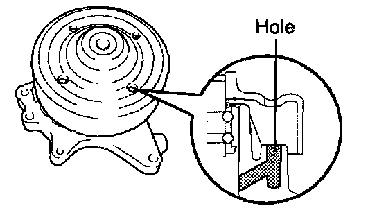 Visually check the drain hole for coolant leakage. If leakage is found, replace the water pump.