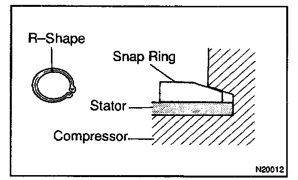 NOTE: The snap ring should be installed so that beveled side faces up.