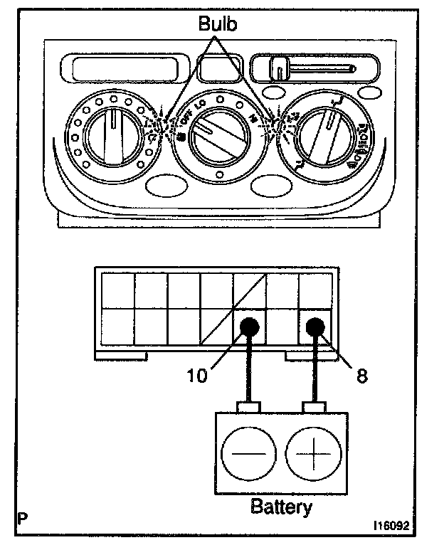 b. Connect the positive (+) lead from battery to terminal 8 and then check that the indicator dims.