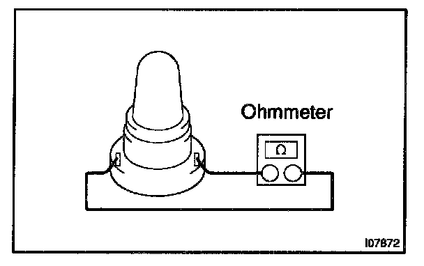 Using an ohmmeter, apply the tester as shown in the illustration to the test for continuity.