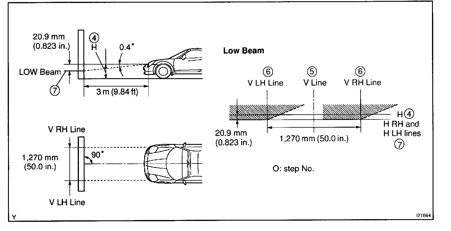 HINT: As shown in the illustration, adjust each aim of the RH and LH lights.