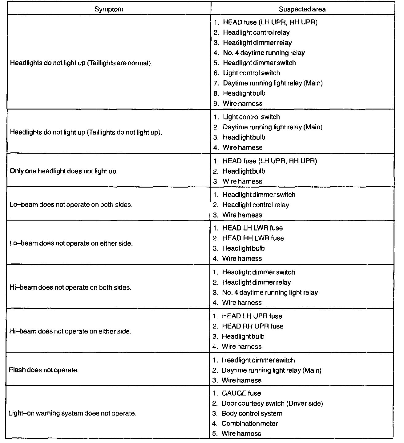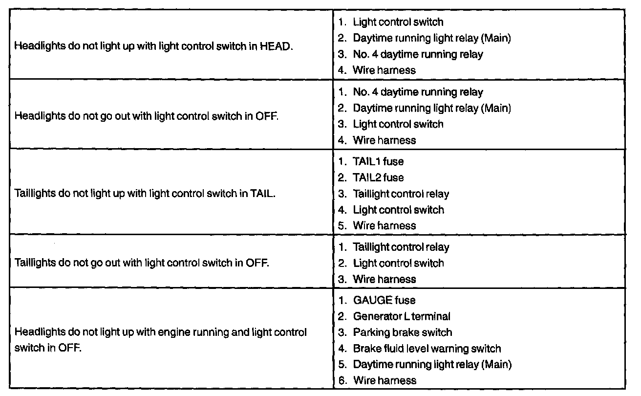 Problem Symptoms Table - Headlight And Taillight System (Part 1):