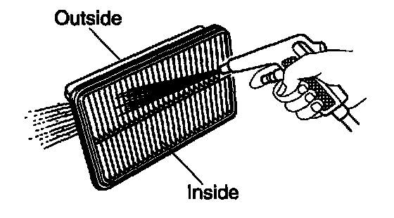 b. Clean the air filter with compressed air. First blow from the inside thoroughly, then blow off the outside of the air filter.