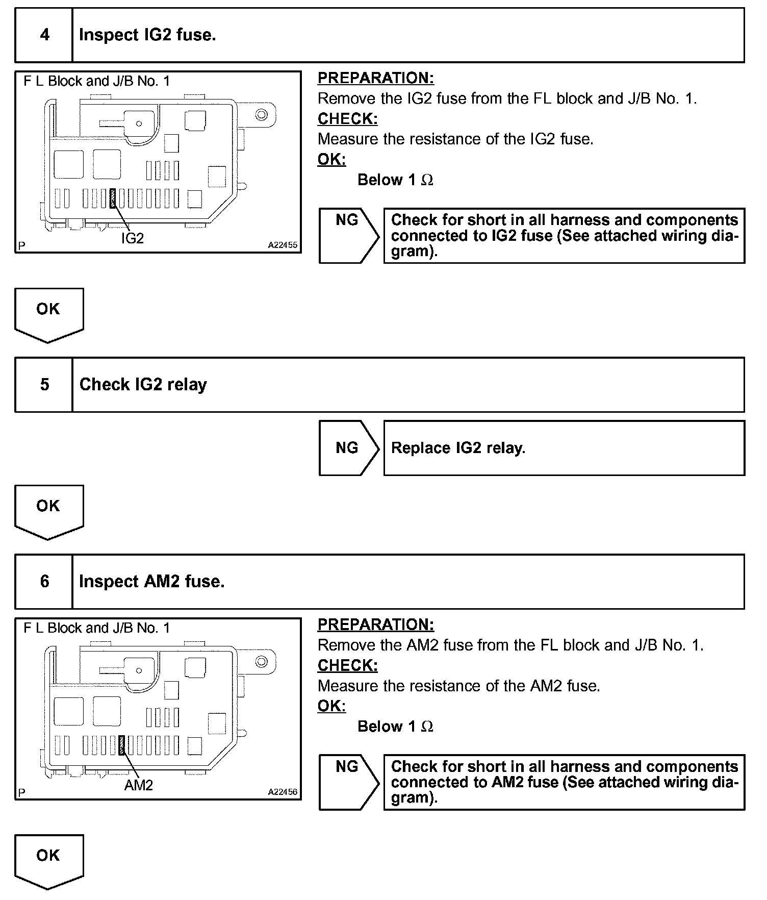 When the ignition switch is turned ON, battery positive voltage is applied to the IG2 relay and terminal IGSW of the ECM. Then the EFI main relay (Marking: EFI MAIN) control circuit in the ECM sends a signal to terminal MREL of the ECM, switching on the EFI main relay.