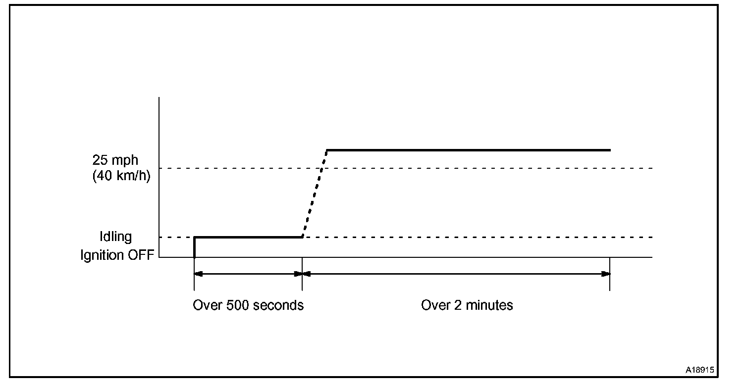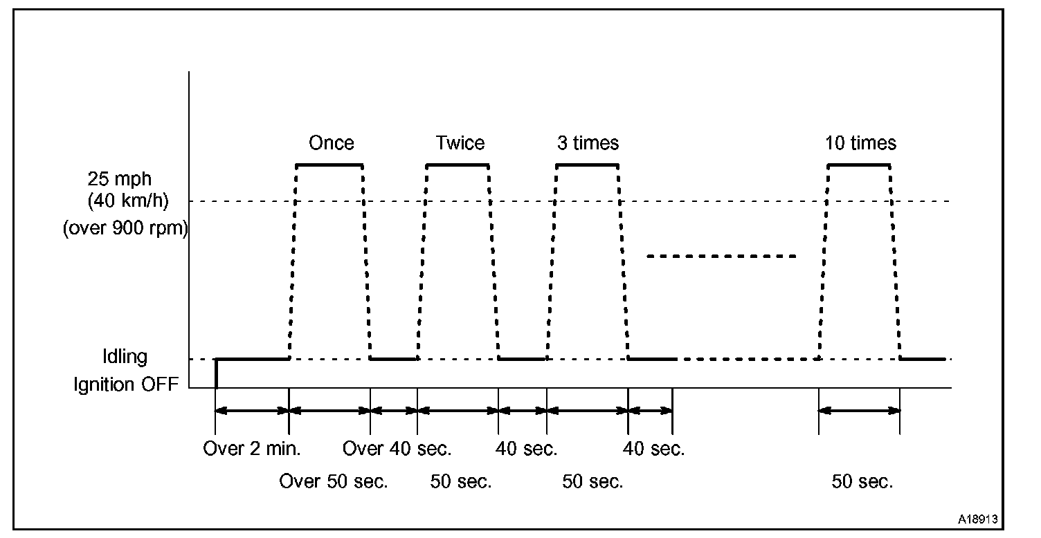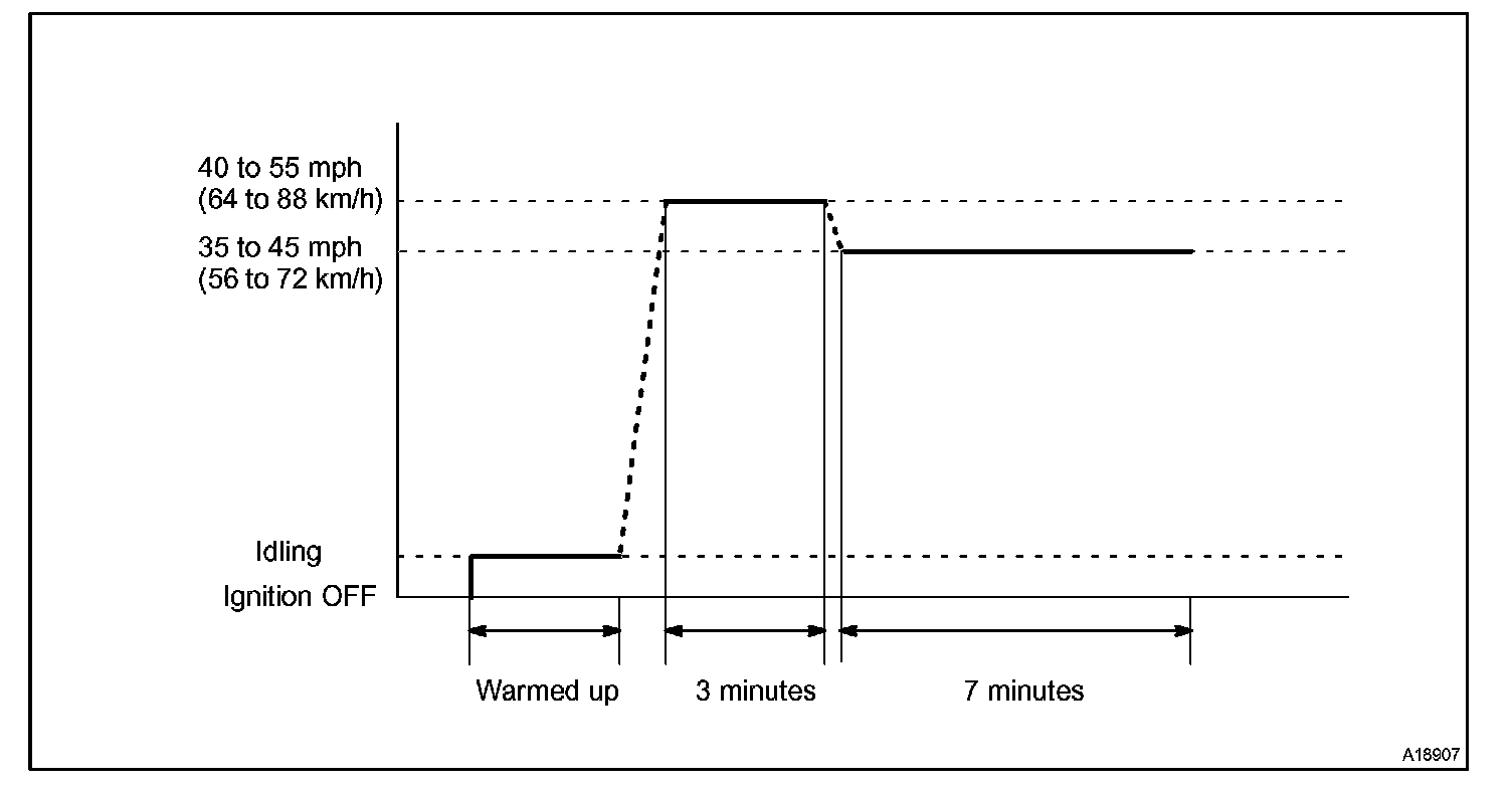 If IAT is less than 10°C (50°F) when engine was started, drive the vehicle at 40 to 55 mph (64 to 88 km/h) for additional 4 minutes.