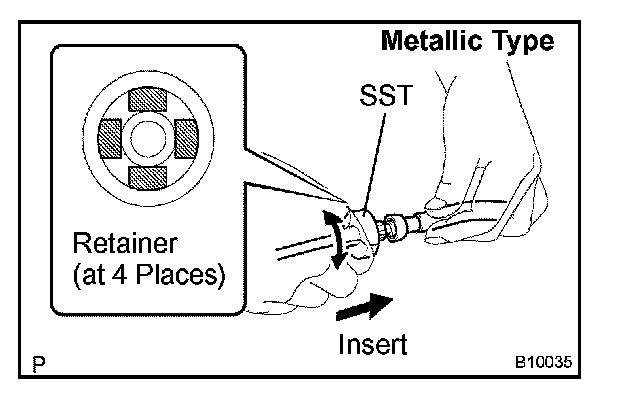 3. Turn the SST, align the retainers inside the connector with the SST chamfered parts and insert the SST into the connector.