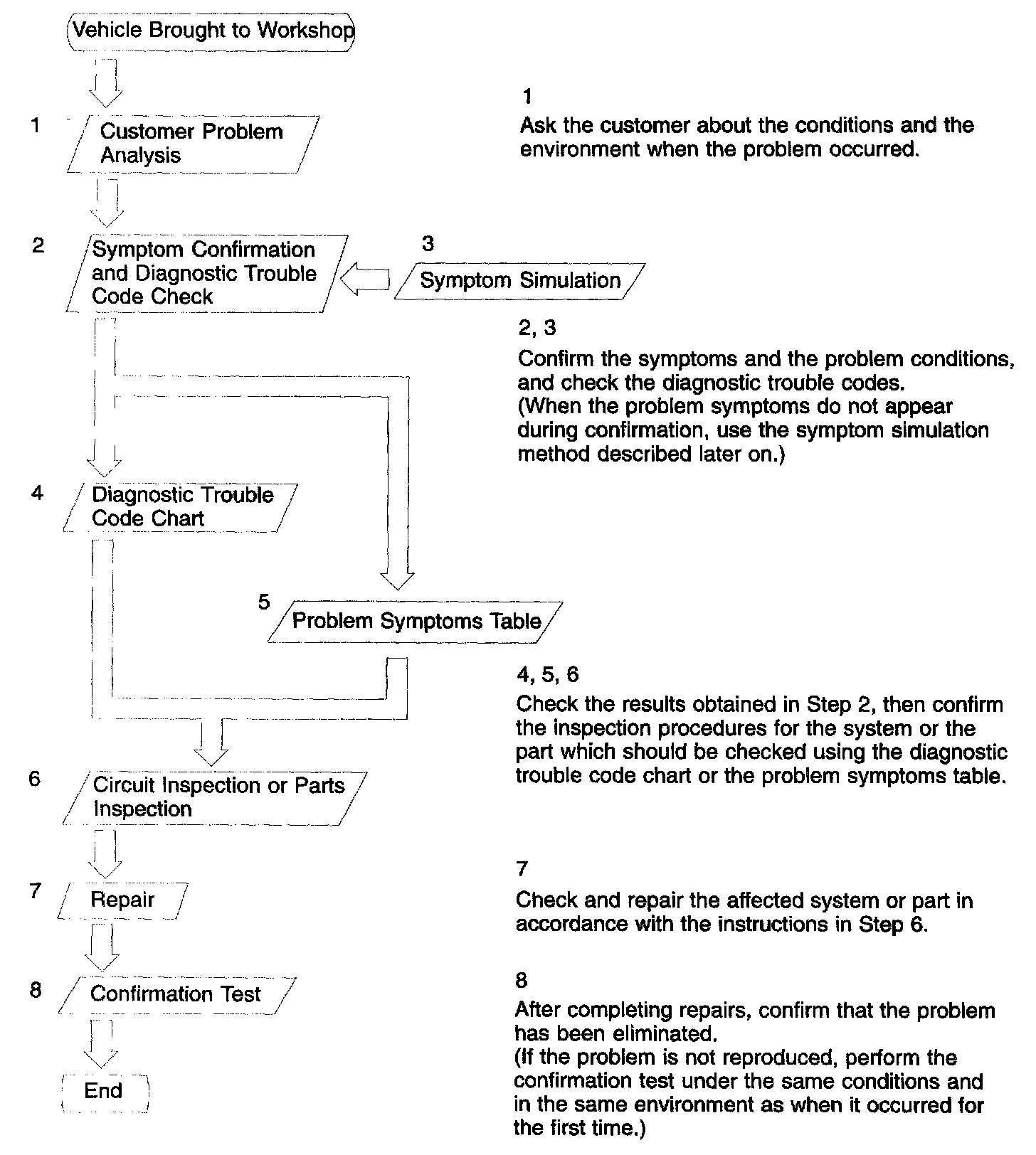 Carry out troubleshooting in accordance with the procedures. Here, only the basic procedures are shown. Details are provided in Diagnostics section, showing the most effective methods for each circuit. Confirm the troubleshooting procedures first for the relevant circuit before beginning troubleshooting of that circuit.