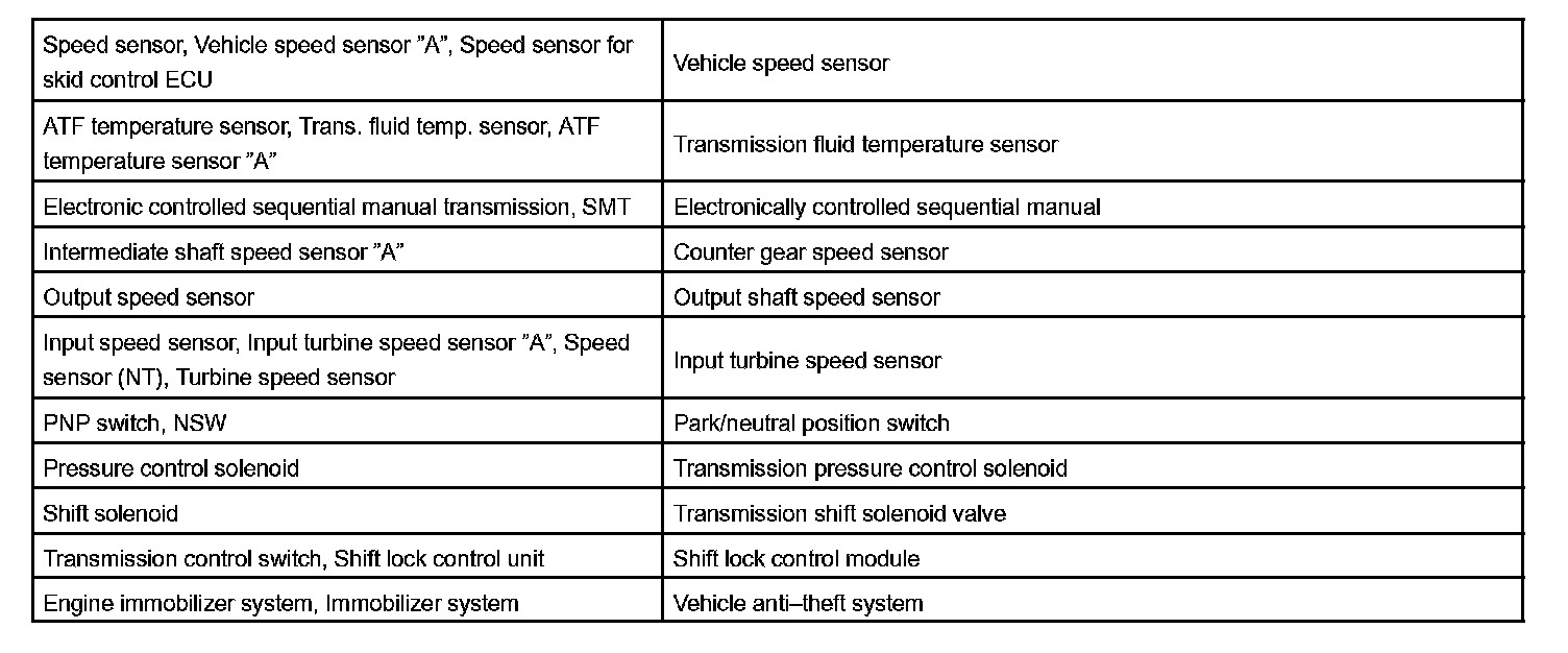 Toyota/Lexus Part And System Name List Part 2: