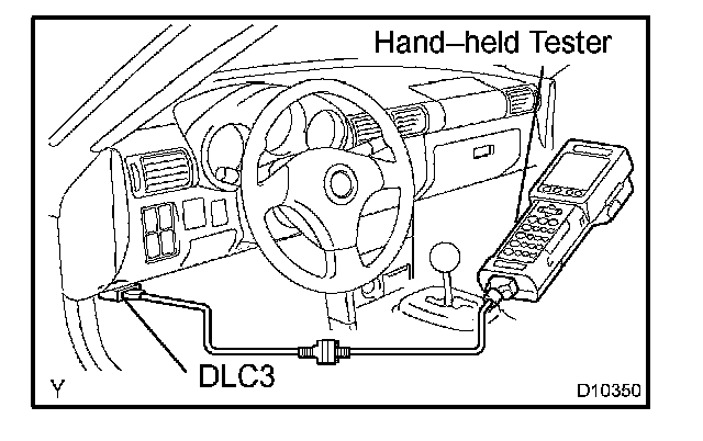 2. Connect the hand-held tester or the OBD II scan tool to the DLC3.