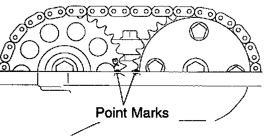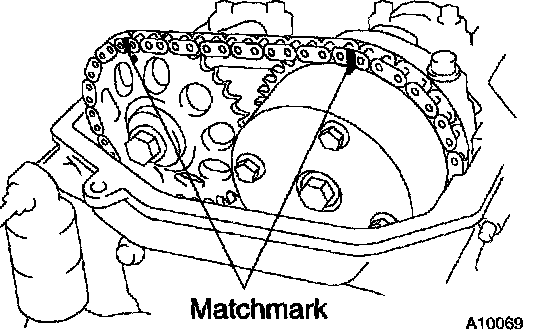 n. Check that the matchmarks on the timing chain and 2 timing sprockets.