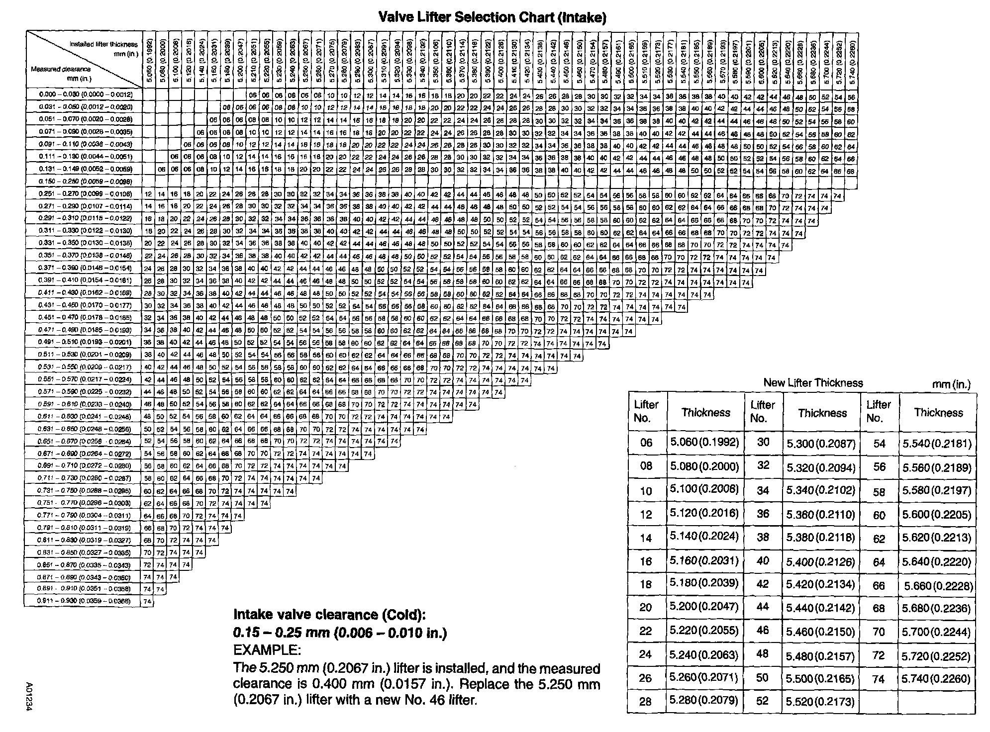 Valve Lifter Selection Chart (Intake)