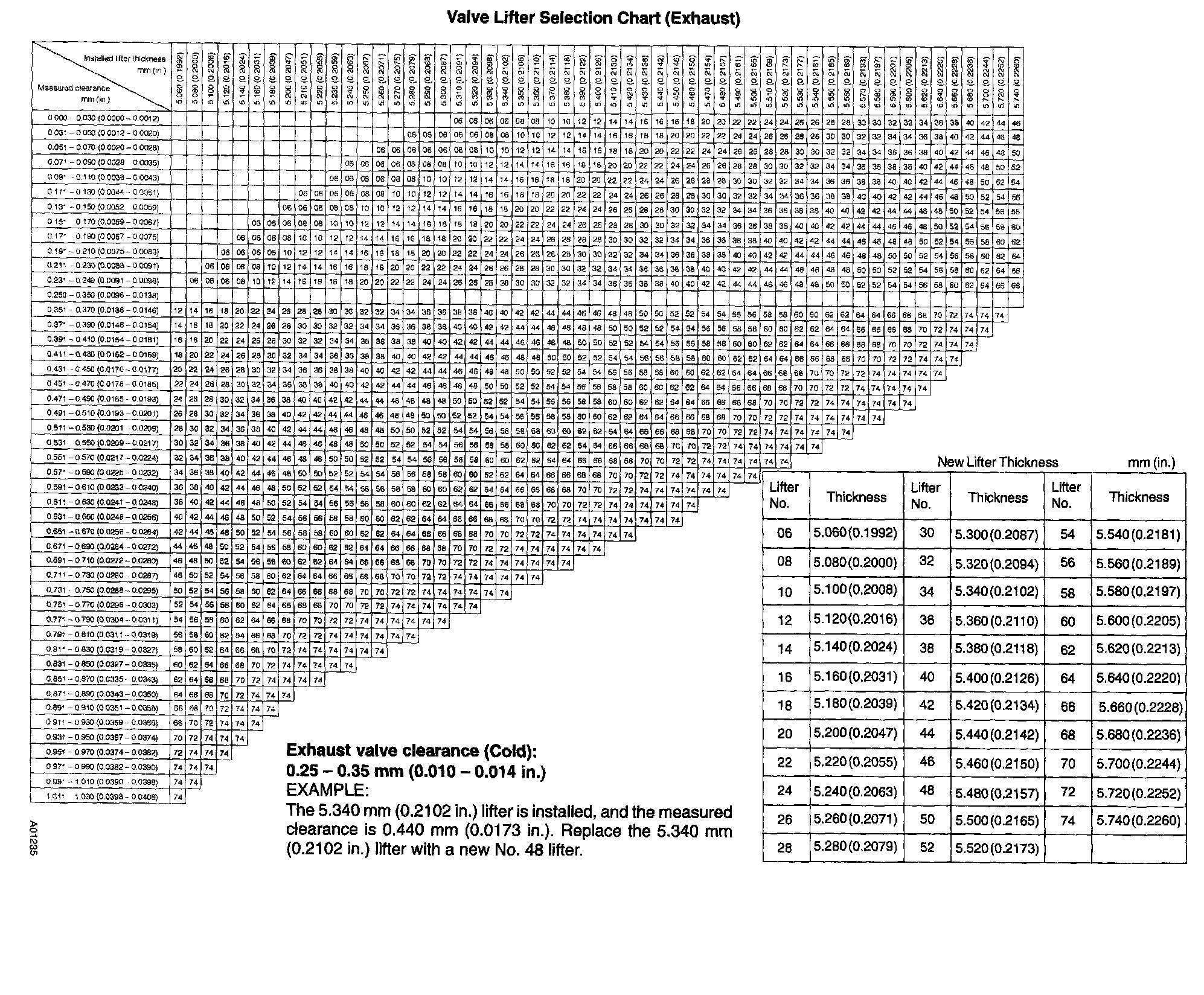 HINT: Lifters are available in 35 sizes in increments of 0.020 mm (0.0008 inch), from 5.060 mm (0.1992 inch) to 5.740 mm (0.2260 inch).