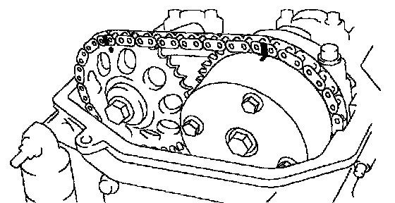 b. Place matchmarks on the timing chain and camshaft timing sprockets.
