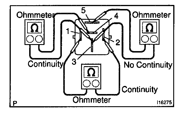 1. Using an ohmmeter, check that there is continuity between terminals 1 and 2.