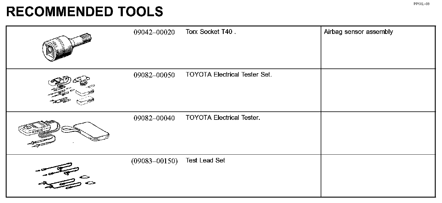 Supplemental Restraint System - Recommended Tools: