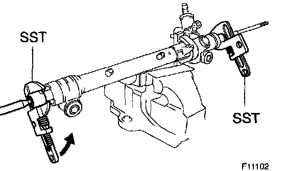 d. Using SST, hold the LH rack end steadily and using another SST, torque the RH rack end.