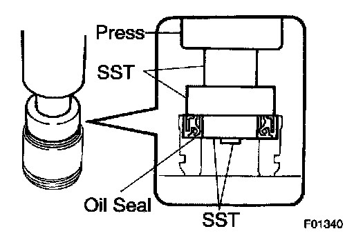 HINT: As shown in the illustration, from the opposite side of SST confirm that its claws are firmly caught on the oil seal.