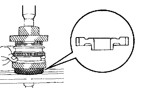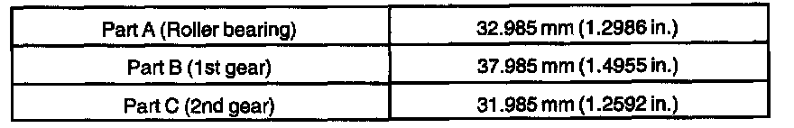 a. Select a snap ring from the table above that will make the thrust clearance of the front bearing inner race less than 0.1 mm (0.0039 inch).