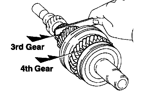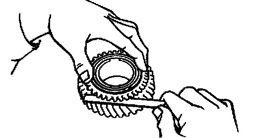d. Using a feeler gauge, measure the clearance between the synchronizer ring back and gear spline end.