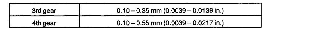 If the clearance exceeds the maximum, replace the gear shift fork or hub sleeve.