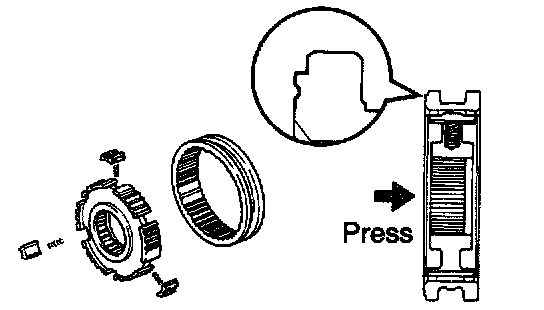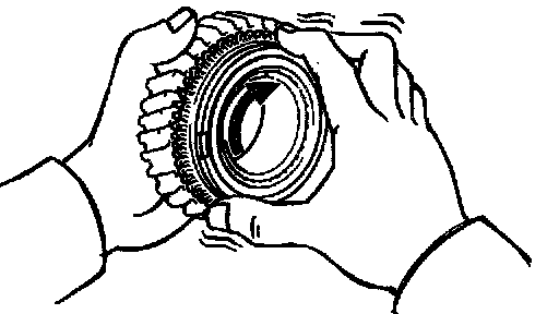 Turn the synchronizer ring in one direction while pushing it to the gear cone. Check that the ring locks.