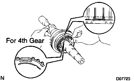 NOTICE: Distinguish the No. 2 synchronizer ring (for the 4th gear) by the teeth on the synchronizer ring.