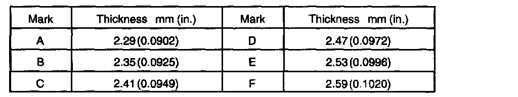 a. Select a snap ring from the table above that will make the thrust clearance of the rear radial ball bearing less than 0.1 mm (0.0039 inch).
