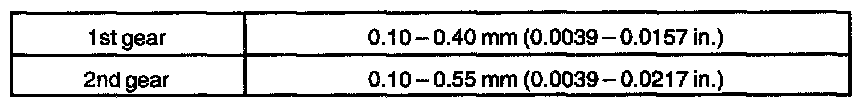 d. Using a feeler gauge, measure the clearance between the synchronizer ring back and gear spline end.