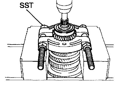 b. Using SST and a press, press out the 3rd driven gear and 2nd gear.